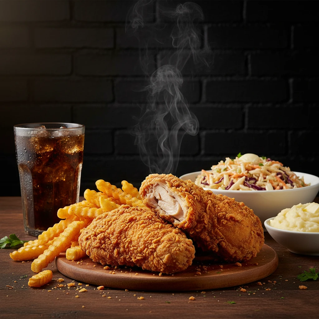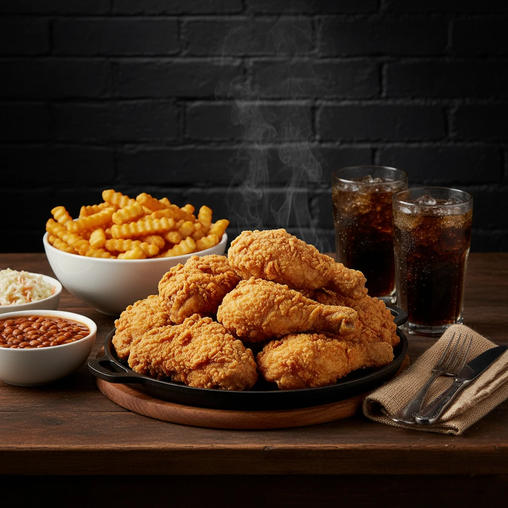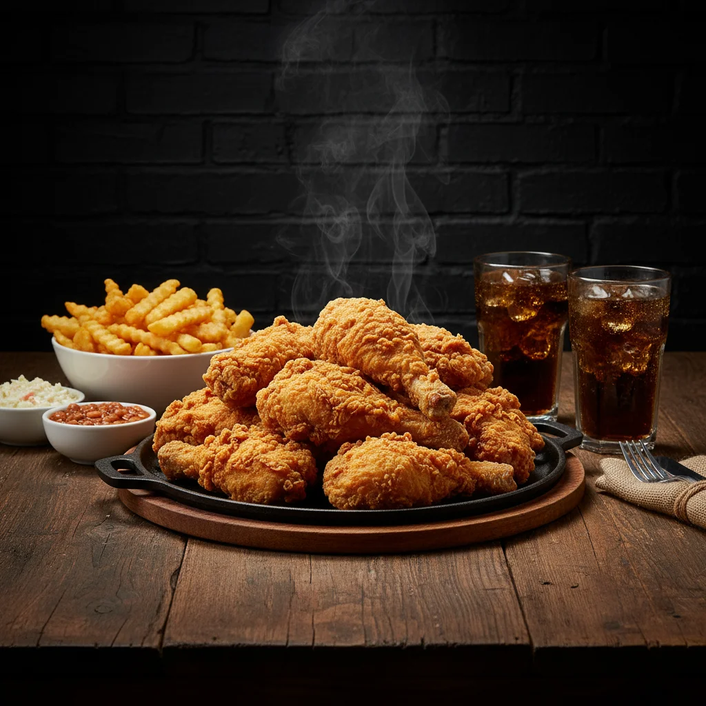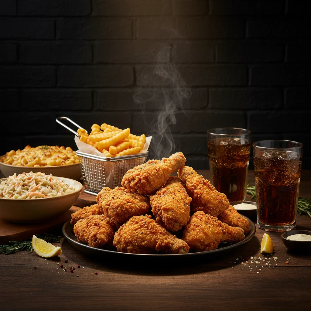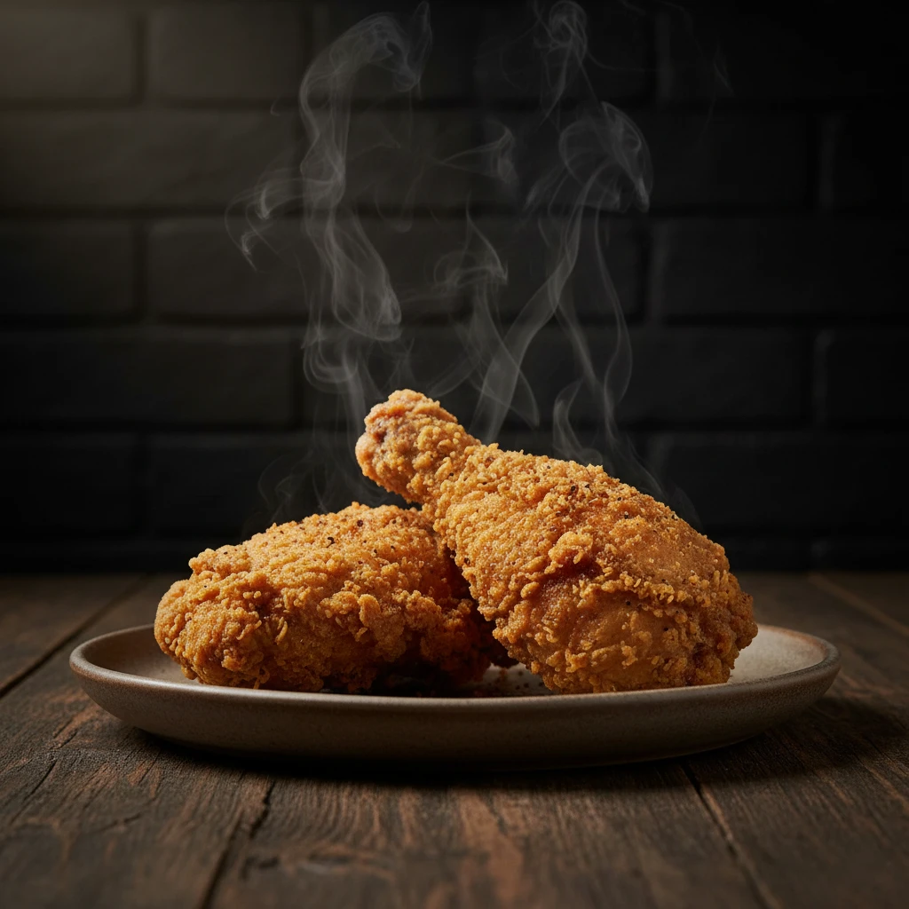 Fried chicken perfectly crispy, golden, and seasoned to perfection.