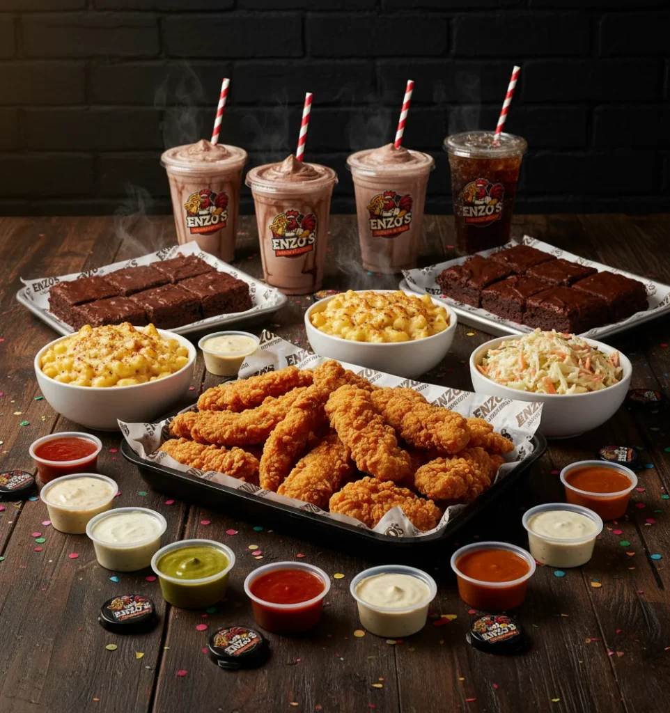 16 Tenders, 2 Family-size Sides, 8 Sauces of your choice, 6 Regular Drinks or 4 Milkshakes, Bonus: 1 Large Dessert (Brownie or Cookie Tray).