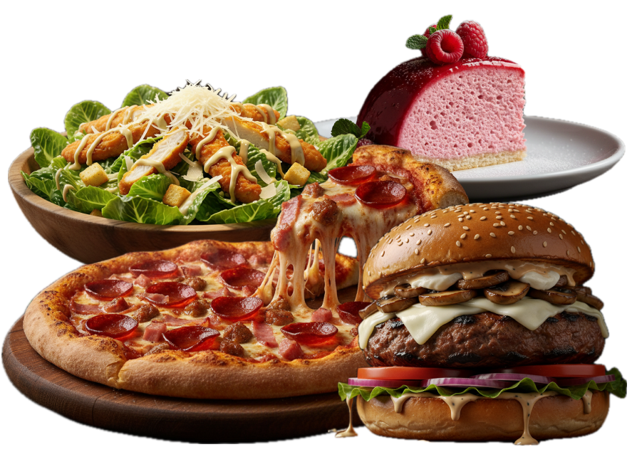 4 pcs Fried Chicken, 4 pcs Chicken Tenders, 10″ Pepperoni Pizza, Chicken Caesar Salad, Hamburger Steak, Souvlaki Plate, Supreme Sole Fillet, Tomato Pasta