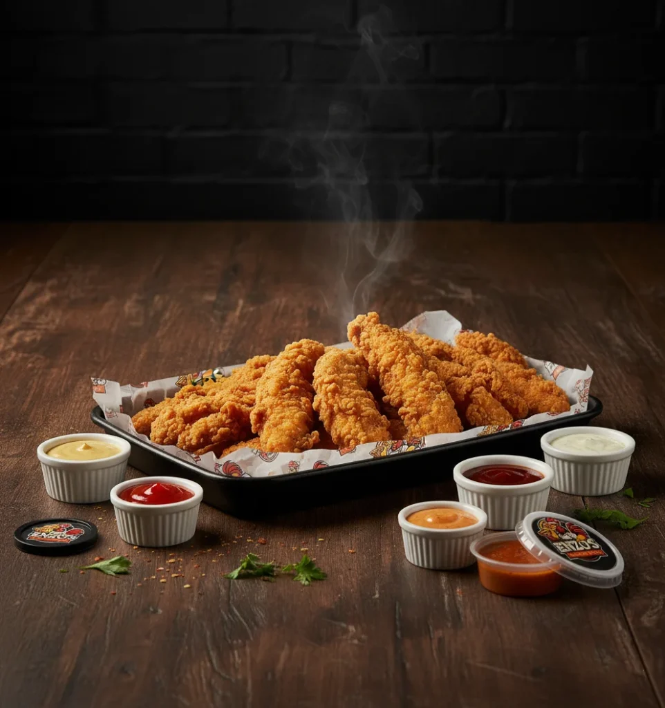 Perfect for sharing with a hungry crew. 16 golden tenders served hot and ready with your favorite dipping sauces.