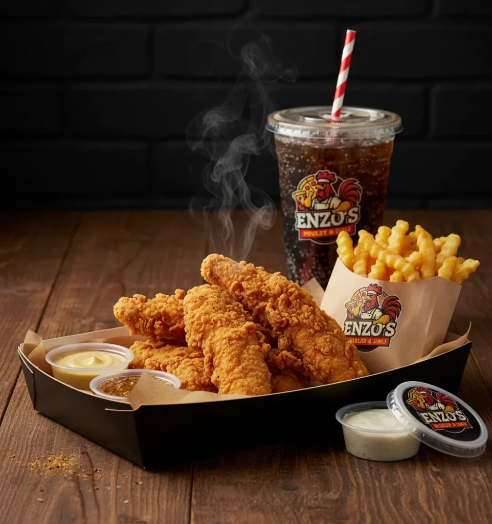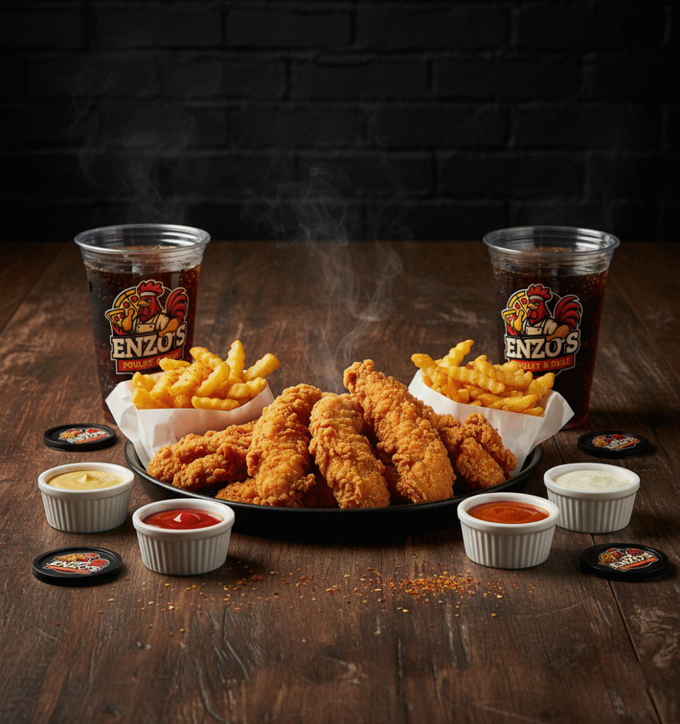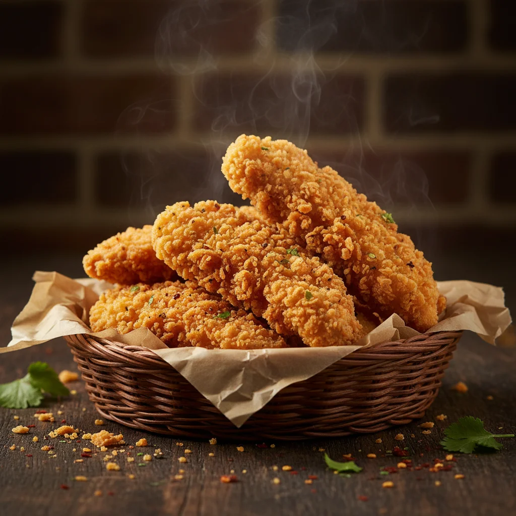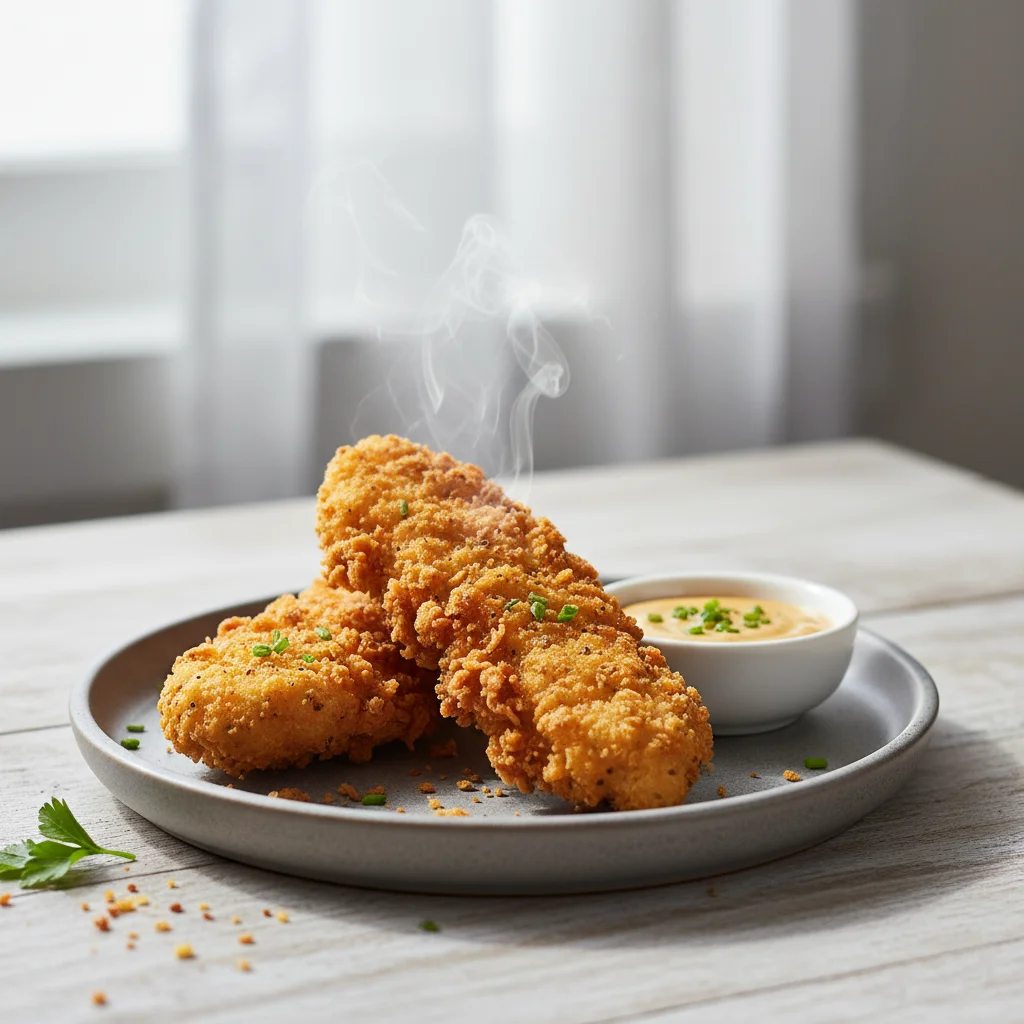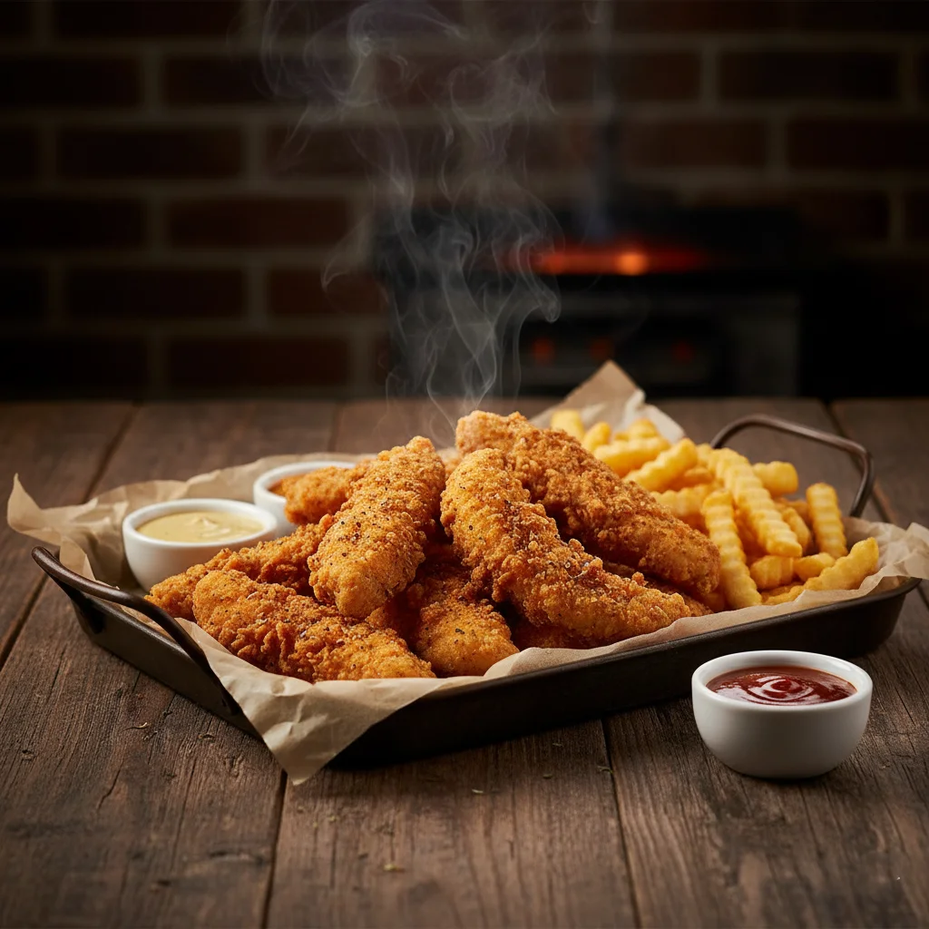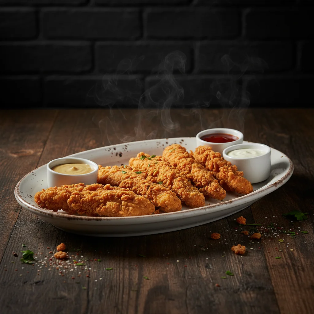 A perfect snack or light meal—2 crispy, golden-brown chicken tenders served fresh and hot.